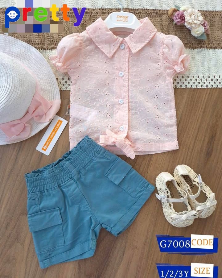 طقم بناتي قطعتين بلوزة +شورت جبردين